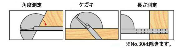 プロトラクター 使い方-鋭角(10°程度まで)の加工をされたワーク測定には、安定性に優れた二本竿タイプが適しています。 ケガキ作業の使用方法 ケガキ作業の角度ゲージとしても使用できます。 ※竿が完全固定型 竿全スコヤ 直角確認や材料へのケガキ、線引きなどに使用します。 止型 台形、平行四辺形などの形状をした定規で、45°、90°の確認や、材料へのケガキ、線引きなどに使用します。 プロト